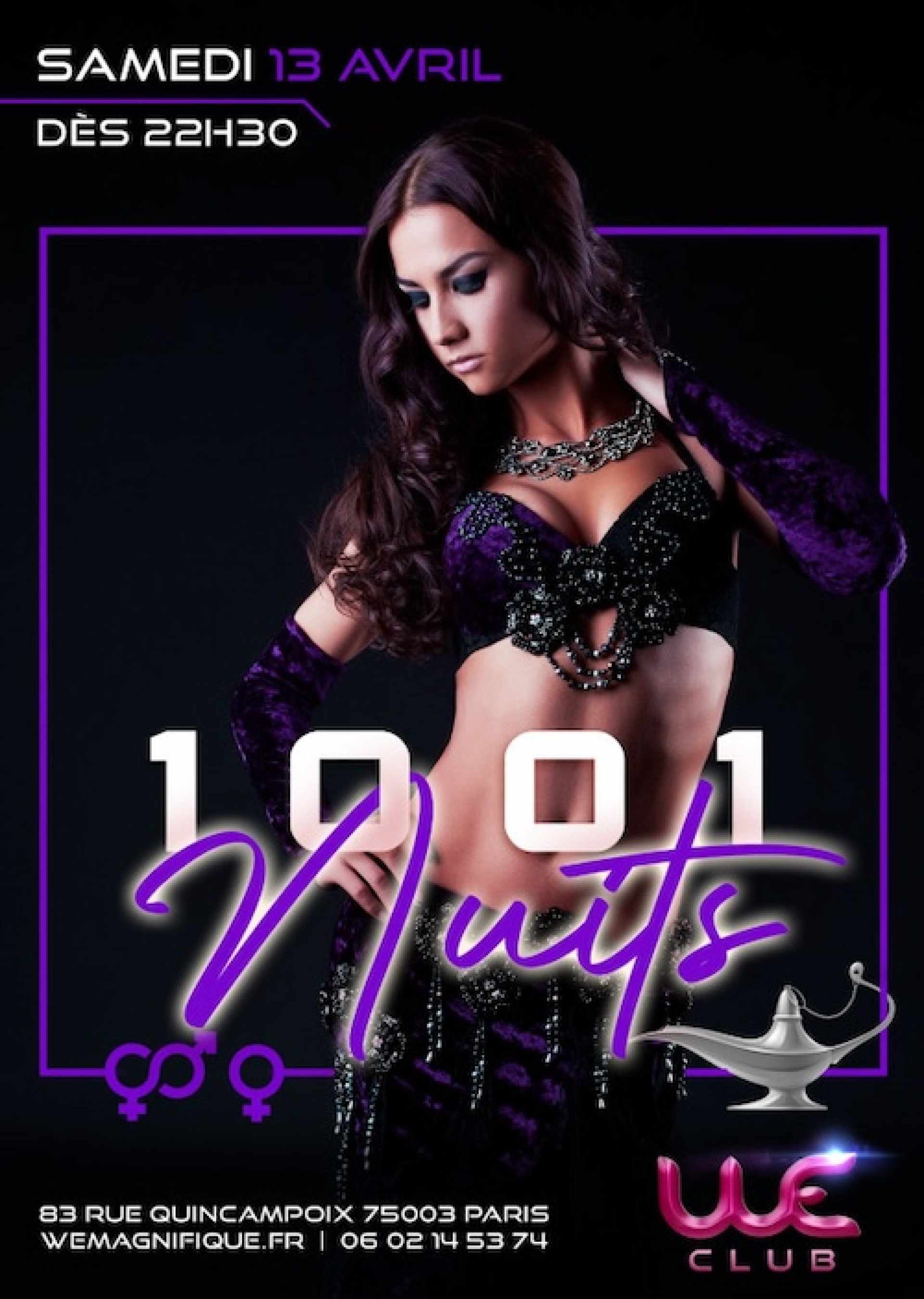 Saturday, 13 April Be a belle of the 1001 nights, Scheherazade or Sultane, come meet princes of the desert, savor oriental flavors! We celebrate the end of Ramadan and transport you to another universe to allow you to escape for an evening! Join us from 10:30 p.m. for a great and beautiful evening! Oriental appetizers and exotic fruits will be offered to you! And for the pleasure of your eyes, an oriental dancer, come and admire belly dancing or try it out.