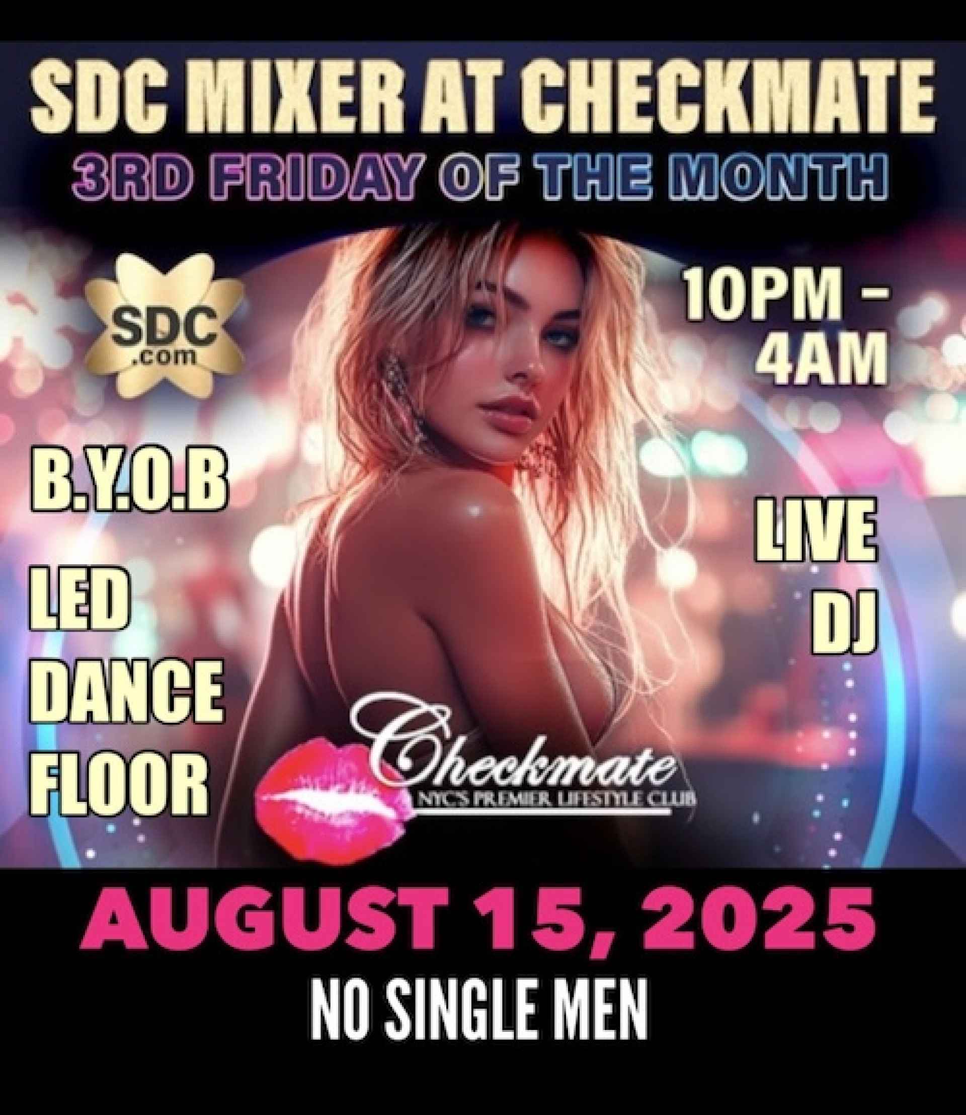 Friday, August 15th, 2025 Beautiful couples and single girls only! A high class, swanky setting for a fetish / swingers party where all your fetishes and fantasies are welcomed. Full or soft swap, voyeurs, e erotica and much more.. New York City’s most fabulous adult lifestyle Friday night party. Only prescreened attractive couples and single girls are allowed. WE ARE MEMBERS ONLY! SINGLE GIRLS ALWAYS FREE! EROTICA is a party where all your fantasies will come true, come play, watch and be watched! Come dance on our VIDEO Dance floor to the sounds of our live DJ We are the club “Where the pretty people play “ ABSOLUTELY NO SINGLE MEN! NO WALK INS REGISTRATION ON OUR WEBSITE W/FULL BODY AND FACE PICTURE OF BOTH IS A MUST TO BE APPROVED. All Sexy and Fit couples welcome!!! (Must be 21 and Over) No Single Guys Permitted SINGLE FEMALES ARE ALWAYS FREE!!! CHECKMATE is a members only private club. ALL GUEST MUST BE REGISTERED AS MEMBERS.