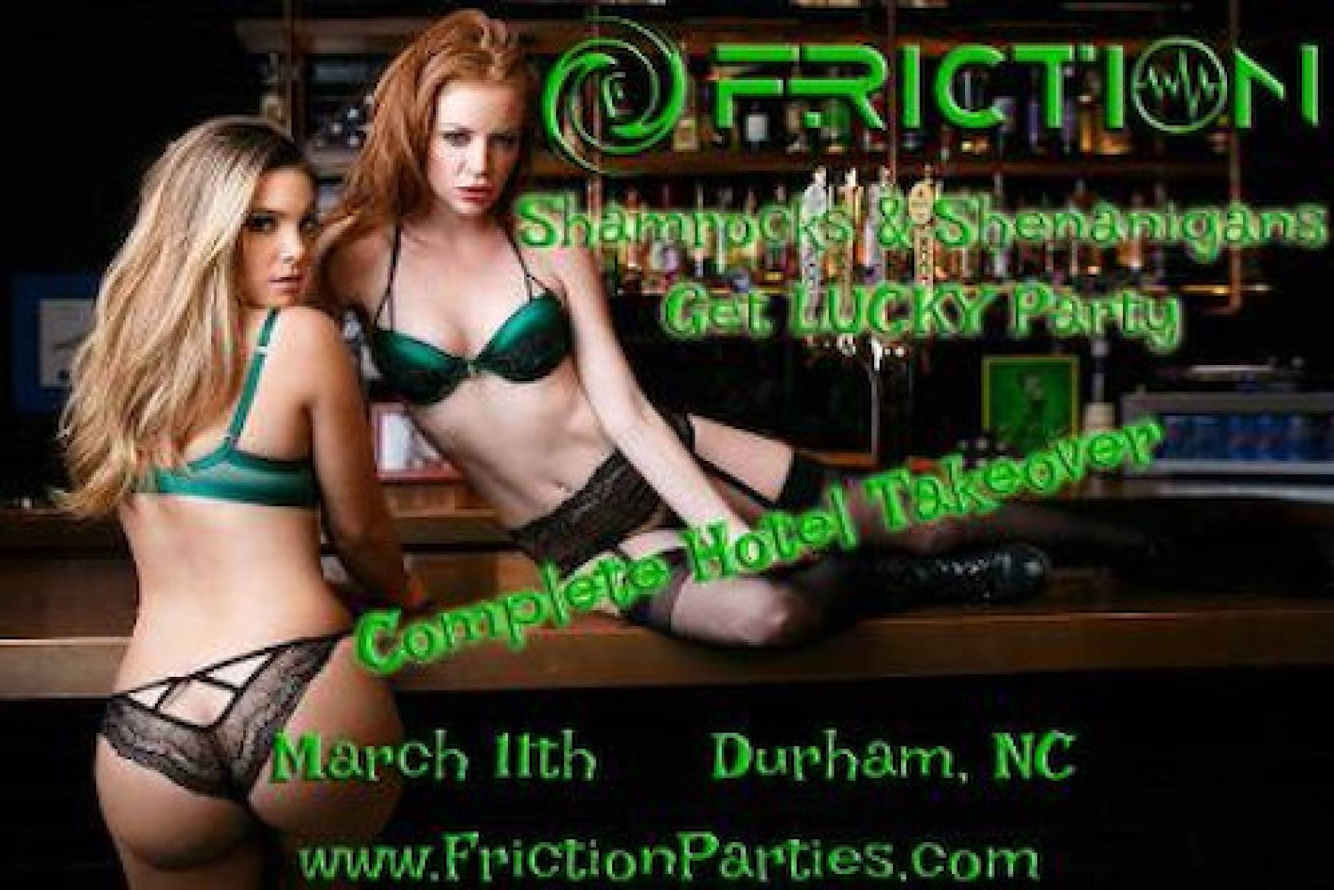 Friday & Saturday, March 10 & 11, 2023 GO TO WWW.FRICTIONPARTIES.COM FOR TICKETS AND HOTEL LINK Shamrocks and Shenanigans IN CAROLINA THIS IS A HWP EVENT ONLY FOR ATTRACTIVE COUPLES & SINGLE WOMEN Members coming from all of our locations/cities for this event so you will have countless opportunities for endless erotic encounters that ONLY Friction can provide!