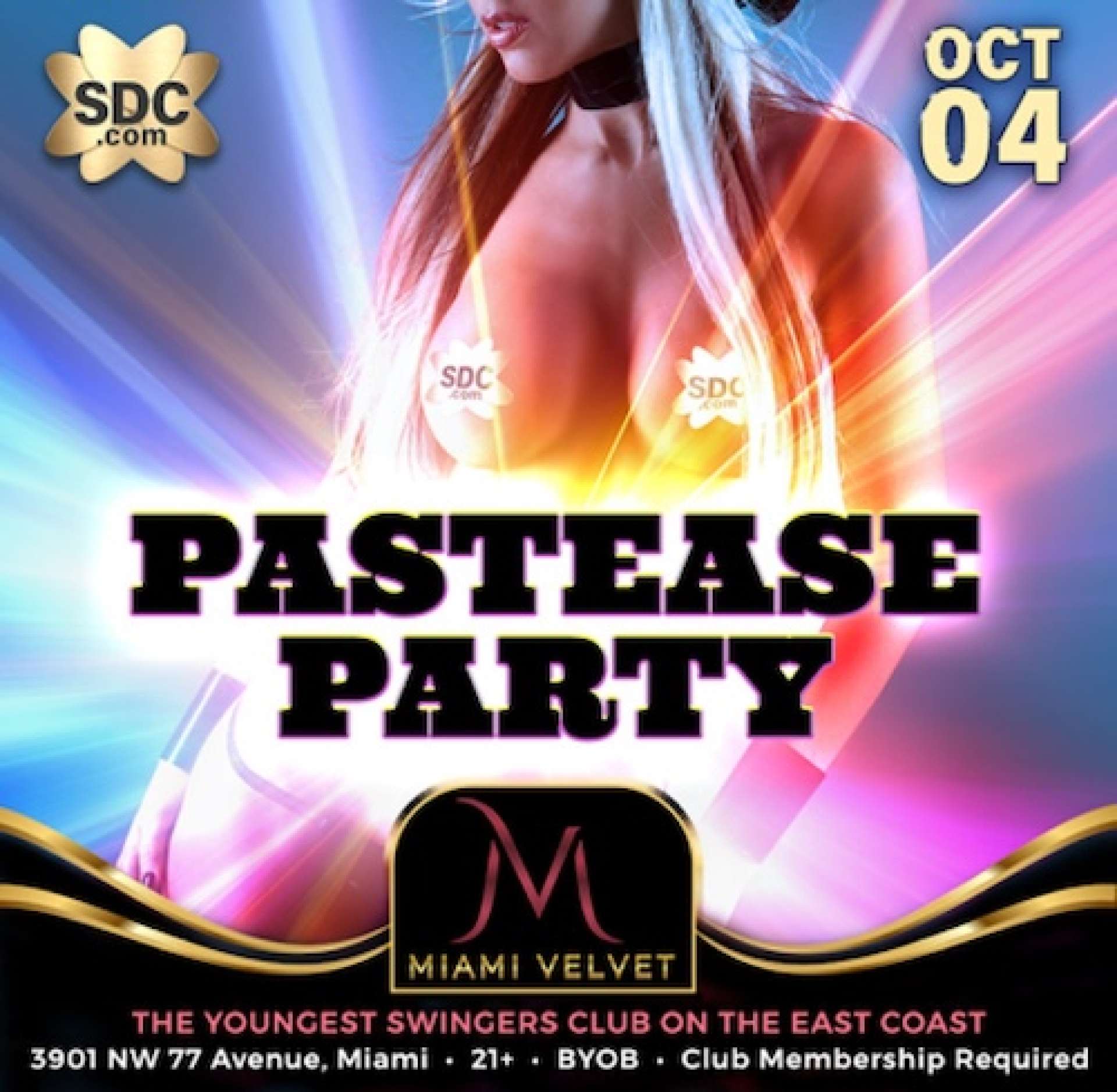 Saturday, October 4th Doors Open at 10:00pm Join SDC & Miami Velvet as we celebrate a night just for COUPLES AND SINGLE LADIES! We are offering a FREE ONE DAY Membership for Couples On The SDC Guest List All Night Tonight SDC.com Couples with screen names on the guest list are just $135 at the door! Strict Dress Code Enforced