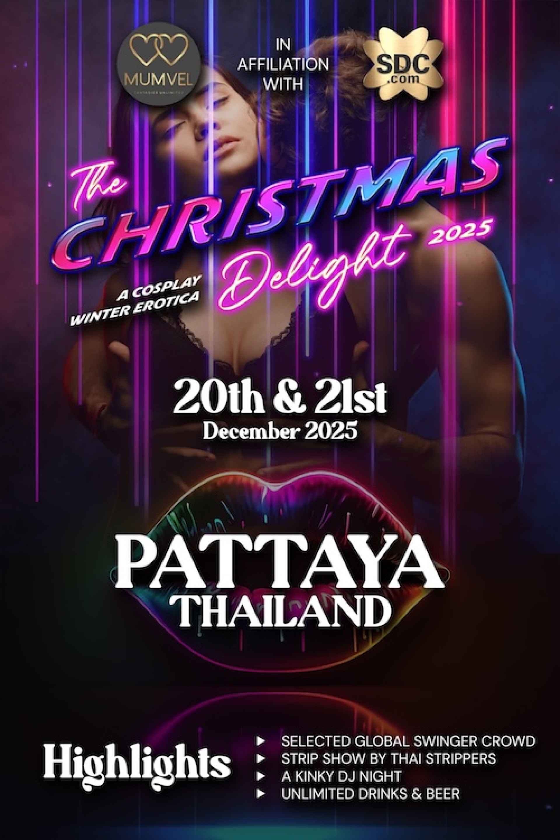 December 20th & 21st Cosplay Winter Erotica “Christmas Delight 2025” is a strictly Experienced Swinger couples Event. This is an exclusive arrangement for the selected global swinger couples, brought together to explore their limits of fantasies and to find new dimensions to their kinkiness in a safe and carefree atmosphere. A world class setup is a key to fulfilment in the sin city of Thailand, PATTAYA. 20th (Saturday) & 21st (Sunday) December 2025