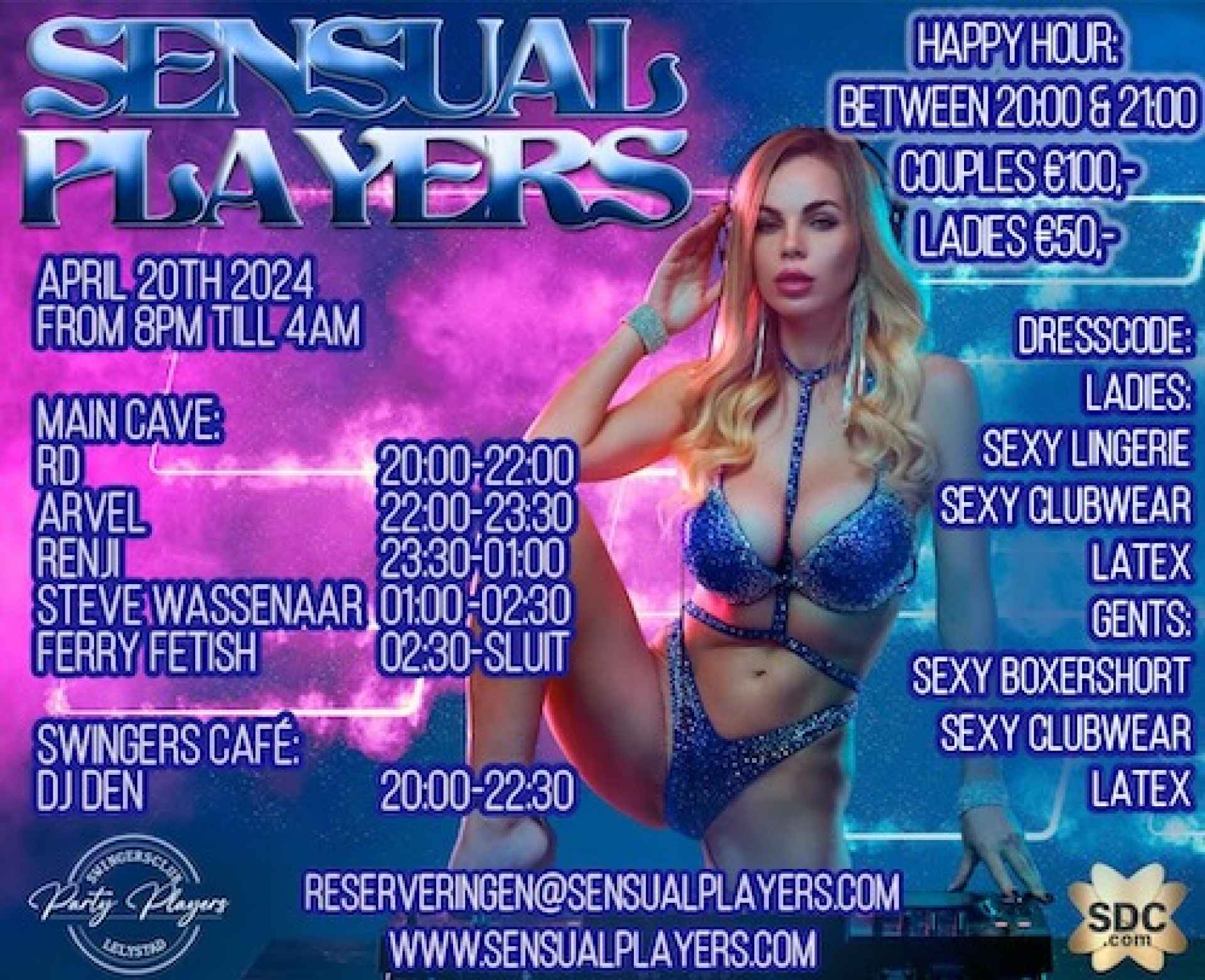 Dansen, sjansen en feesten op zaterdag 20 april! Sensual Players legt de nadruk op het boeken van de beste Dj’s, de extra aankleding van erotisch feestpaleis Party Players en de toegewijde inzet van de Sensual Players organisatie en het klantgerichte personeel. Sensual Players biedt een vrije en veilige sfeer waar jij als bezoeker zo lyrisch over bent!